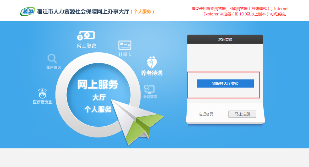 1、点击http://sqhrss.suqian.gov.cn/进入宿迁社保查询页面。