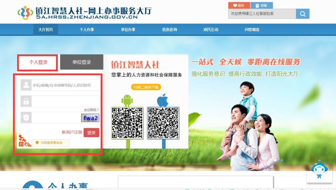 1、点击http://hrss.zhenjiang.gov.cn/进入镇江社保查询页面。
