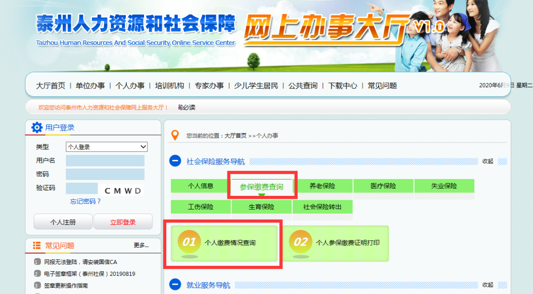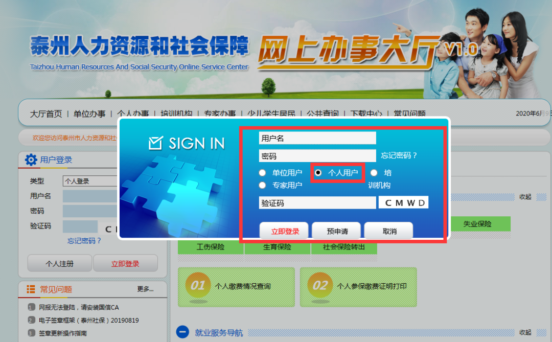 1、点击文章下方的“阅读原文”直接进入泰州社保查询页面。