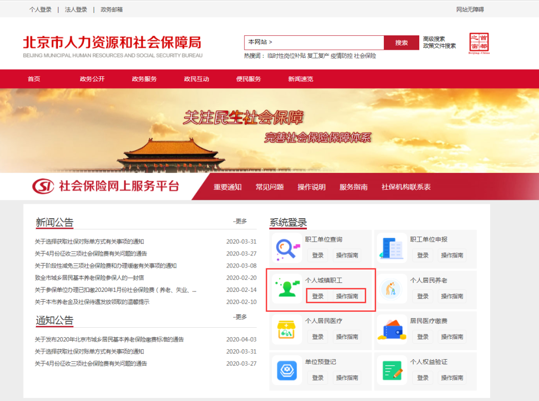 温馨提示:北京城镇职工社保查询入口与北京居民社保查询入口不同,大家根据自己的社保类型选择对应的社保查询入口。